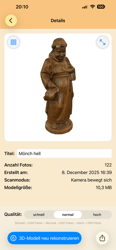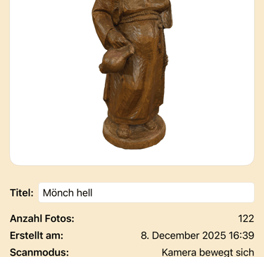 Mit iPhone-Kamera ein Objekt umkreisen um daraus ein 3D-Objekt zu erstellen, welches man z.B. auf einem 3D-Drucker ausgeben kann.